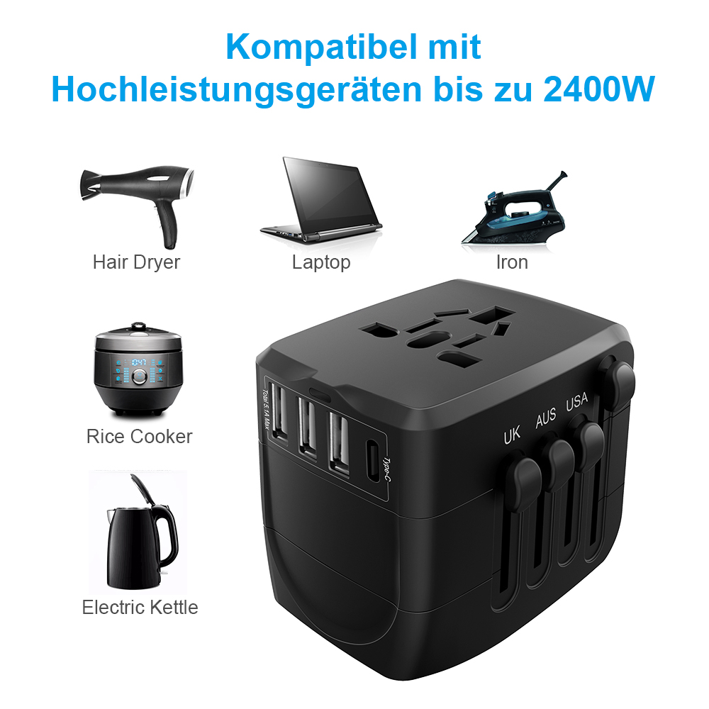 ✈【Kompatibel mit Hochleistungsgeräten bis zu 2400W.】 Hanpure Universal Reiseadapter ist für Reisen nach Übersee und für Geschäftsreisen konzipiert. Hanpure All-in-One-Steckdosenadapter eignet sich ideal für die meisten Hochleistungs-Reisegeräte mit bis zu 2400W Leistung, z. B. 1875W & 2200W Haartrockner, Bügeleisen.